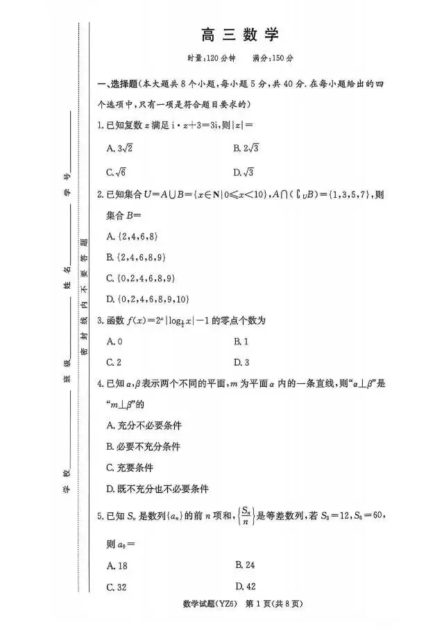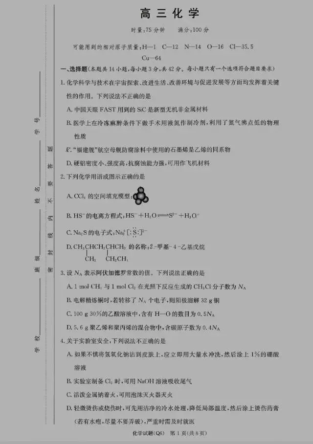 >长沙一中2025-2026学年高三月考(六)(全科)