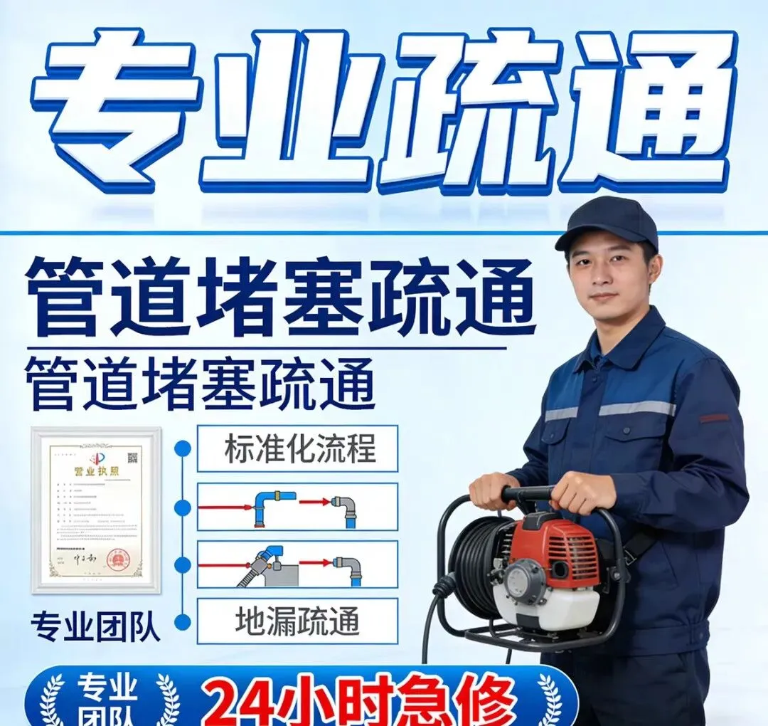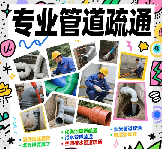 管道疏通:使用家用疏通机、大型疏通机等设备,专业疏通各类疑难下水道、卫生间、地漏、浴缸、菜池、阴沟、马桶、蹲坑等。