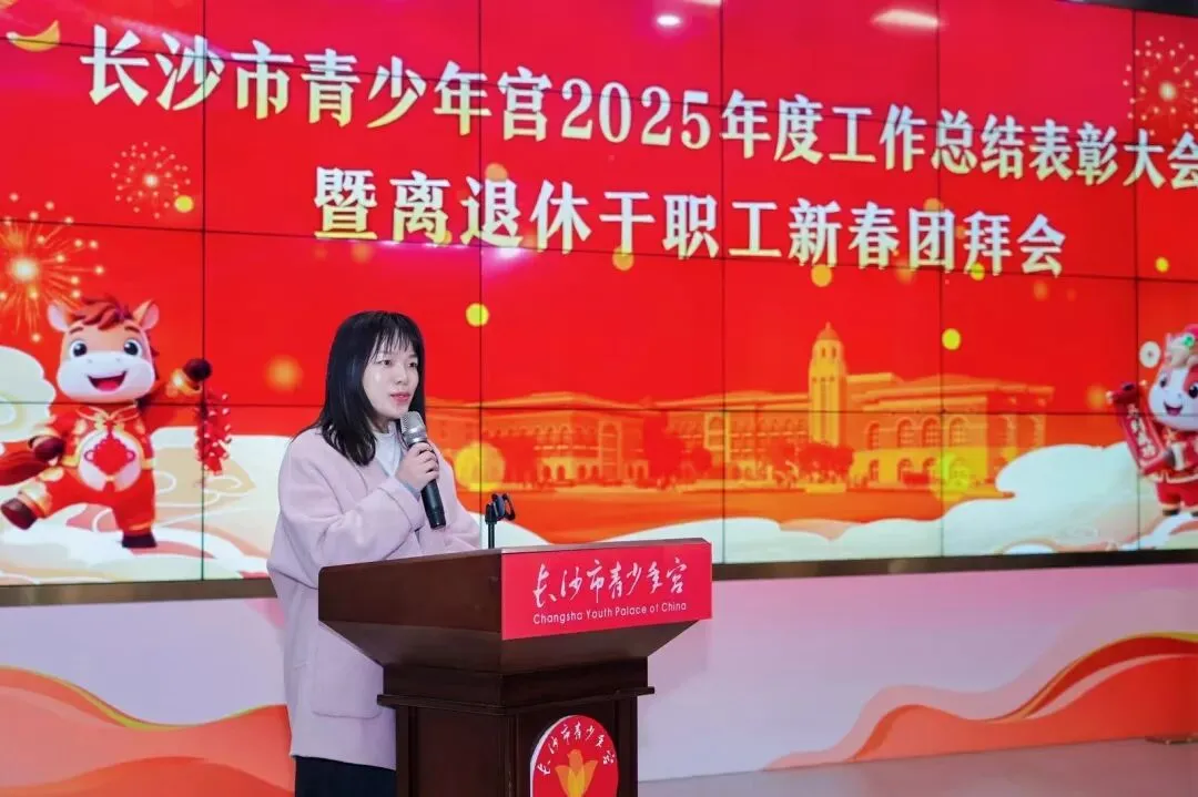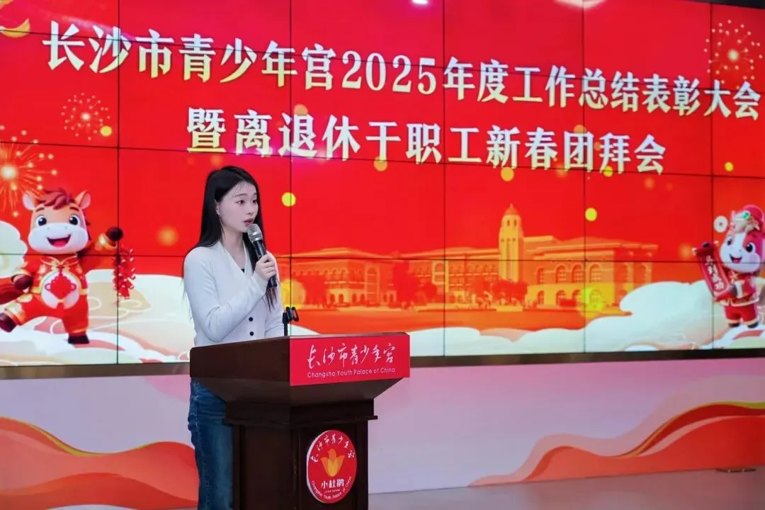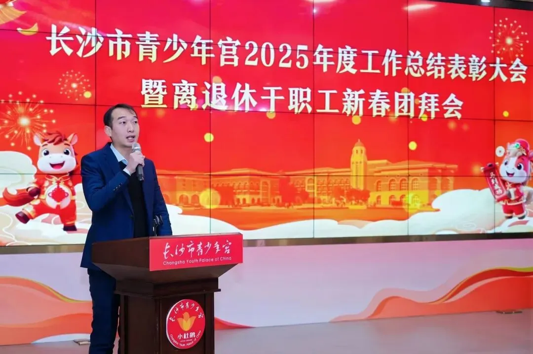 会上,团市委书记会议成员、市青少年宫主任李明代表宫领导班子,向全体干部职工及离退休老同志做了2025年度工作总结汇报。李明主任指出,2025年在共青团长沙市委的领导下,长沙市青少年宫认真学习贯彻落实习近平新时代中国特色社会主义思想,牢牢把握为党育人、为国育才的根本任务,聚焦主责主业,深化改革创新,各项工作取得新进展、新成效。全年开设免费班128个、普惠班1987个,开展公益活动165场,共计惠及学员5万余人次。