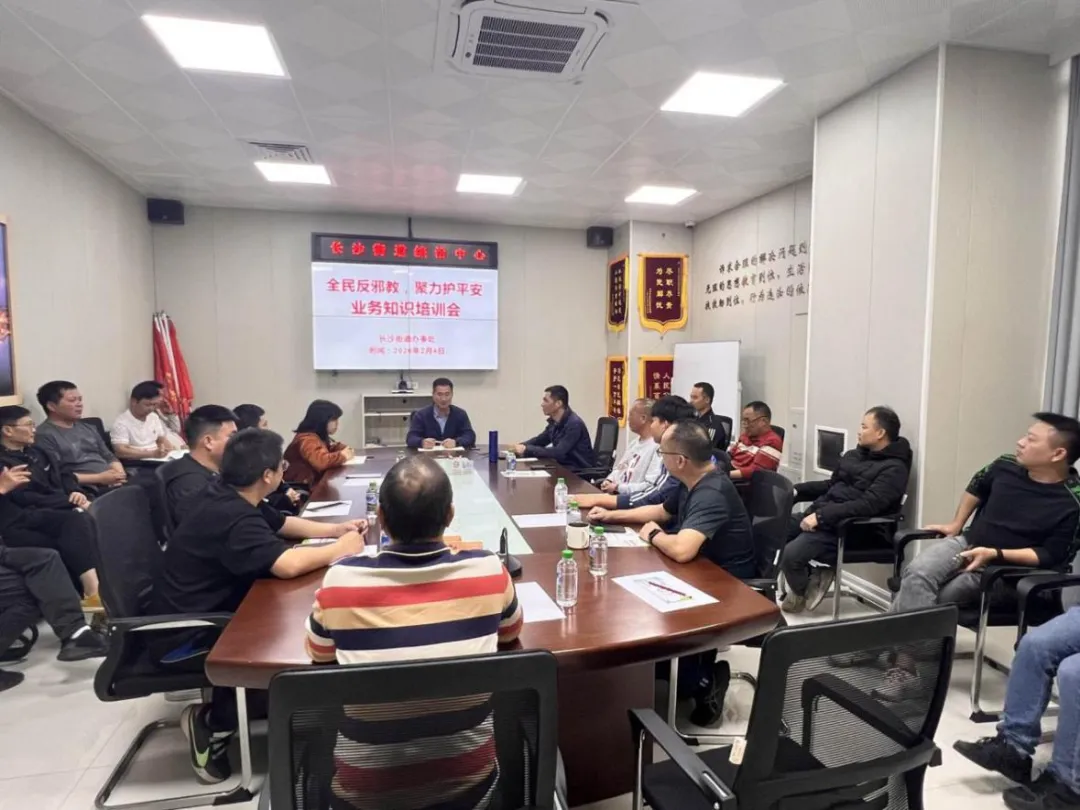 为进一步提升基层工作人员反邪教意识与能力,营造“全民反邪教聚力护平安”的社会氛围,2月4日下午长沙街道综治中心组织开展反邪教专题培训,培训班由街道党工委副书记陆启杰主持,参加人员包括:平安法治办、派出所、各村(社区)治保主任等32人。