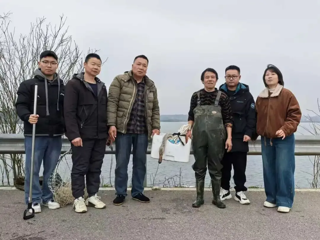保护站工作人员彻夜值守跟踪,2月12日清晨发现小天鹅仍状态不佳、落单无法飞行。区林业局立即组织救援,发动周边熟悉水域情况的群众合力施救。救援人员顶着严寒,踏入冰冷湖水,穿越深厚淤泥,历经艰难将小天鹅安全救出,救出后立即送往长沙市野生动物收容救护中心救治。