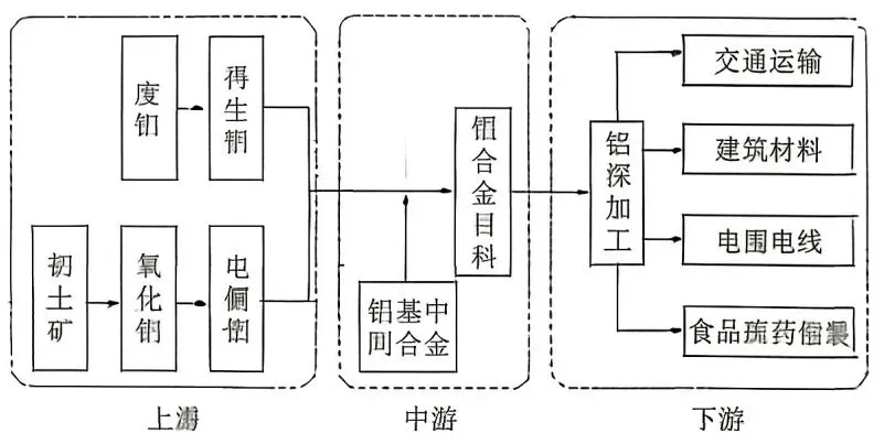 我国是铝产品生产与消费大国,但铝资源高度依赖进口。近年来,我国企业联合国内外采矿、冶炼、物流、基建等企业进行铝土矿海外投资,构建"生产+物流十基建"的合作模式。下图为铝产业链示意图。据此完成7~9题。