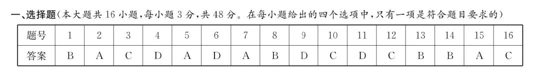 一、选择题(本大题共16小题,每小题3 分,共48分,在每小题给出的四个选项中,只有一项是符合题目要求的)