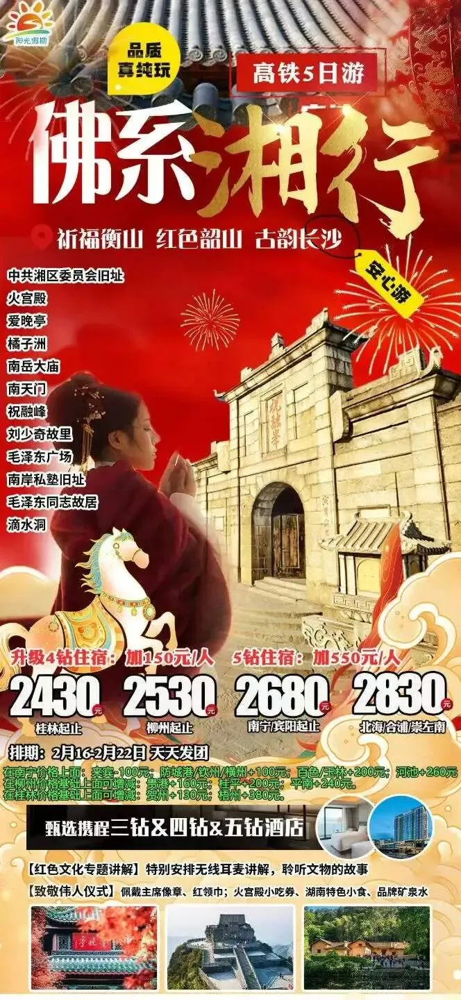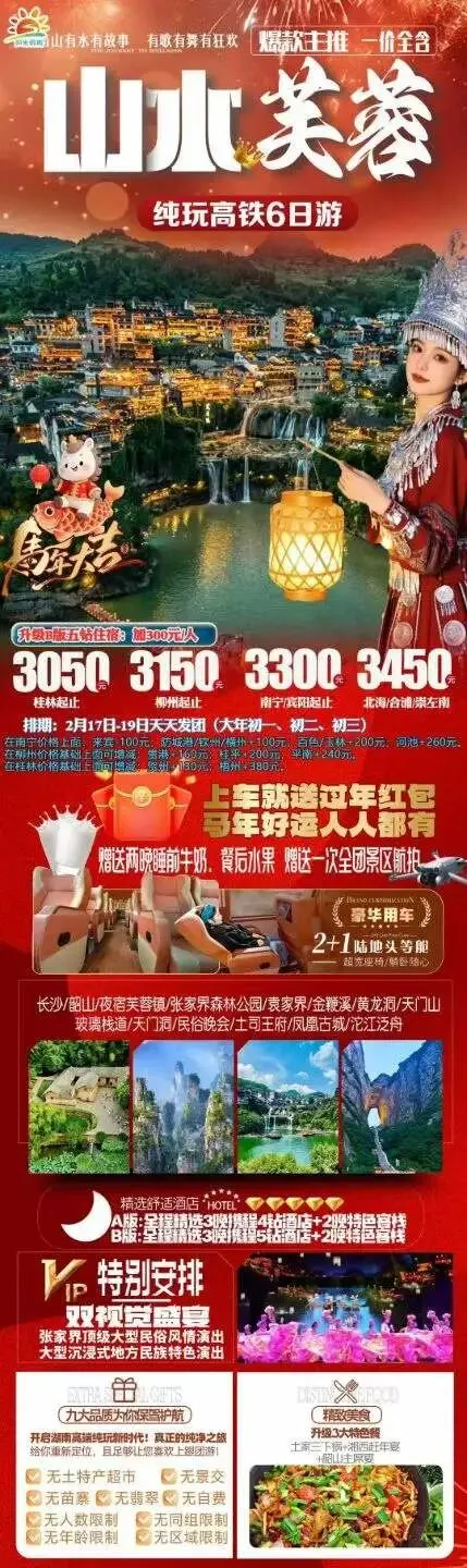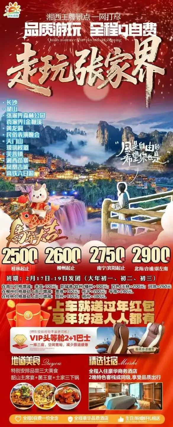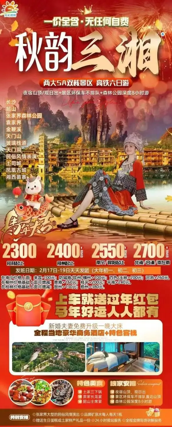 春节特辑【湖南】长沙/韶山/衡山/张家界/湘西,4&5&6天品质/高端产品任你选~