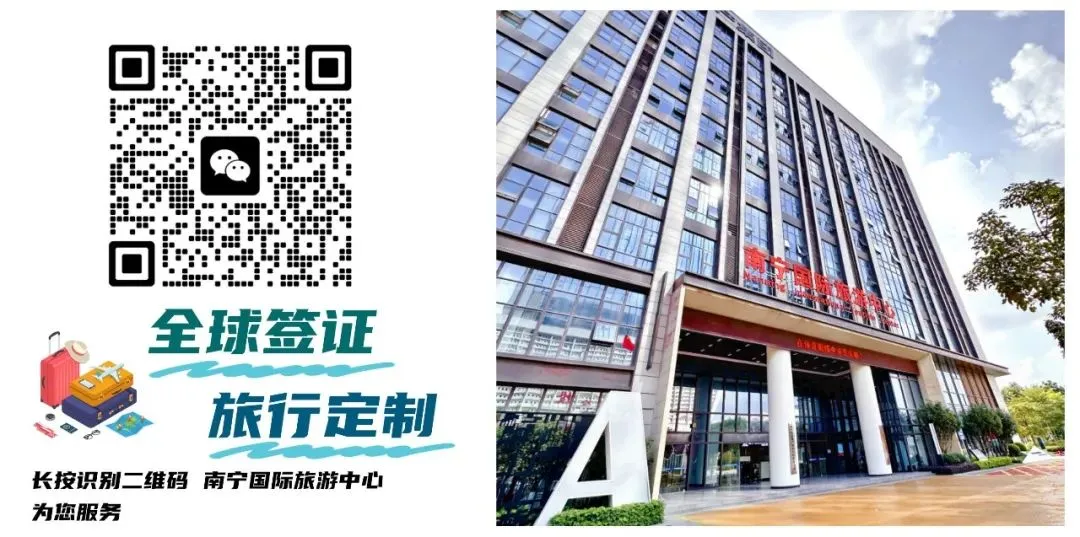 如需帮助、全球签证、旅游咨询、旅行定制请 识别上方客服二维码 信息来源: 南宁国际旅游中心