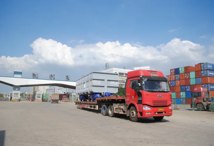 2015年7月,陆运至长沙新港待出口的火车货车厢