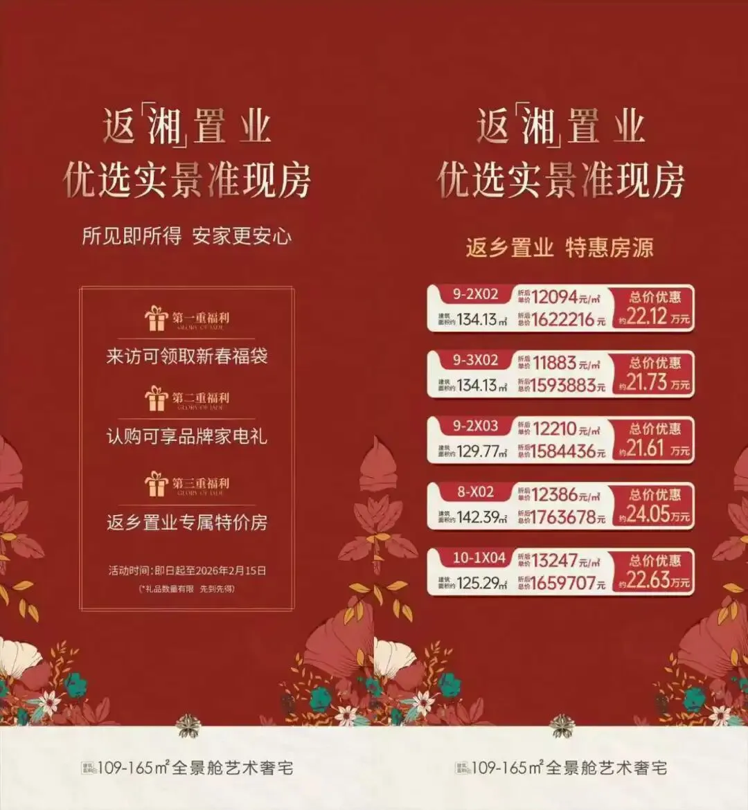 2026年春节置业潮开始刷屏,长沙各大楼盘集中发力,推出从价格直减、折扣让利到礼品补贴等多重福利。