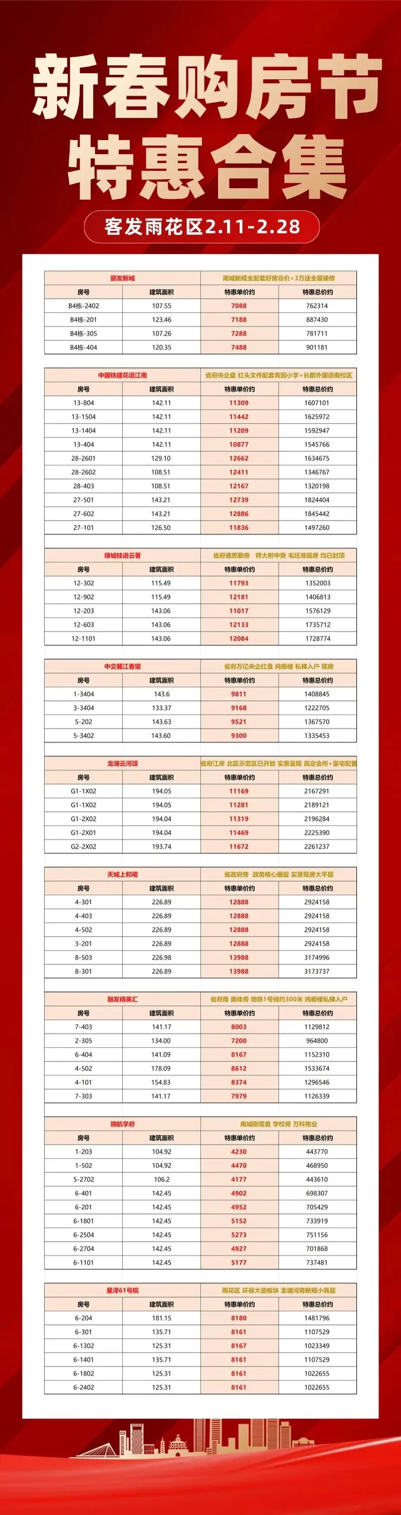 项目涵盖刚需、改善等不同户型,所有优惠均来自近期楼盘官方发布及权威房产平台发布,具体价格优惠还是要以项目输出为准哦!(部分优惠限时有效,建议尽快咨询)