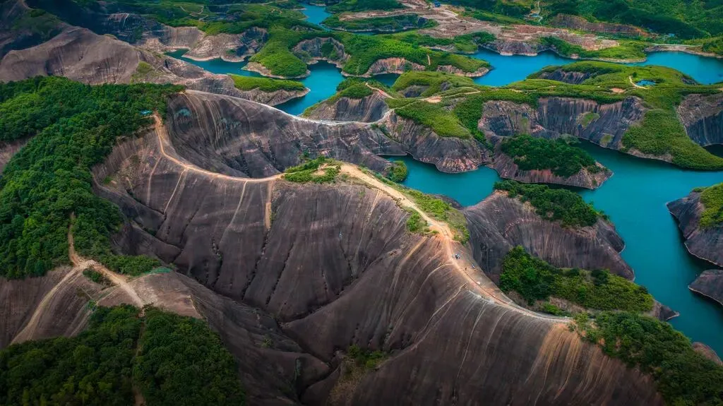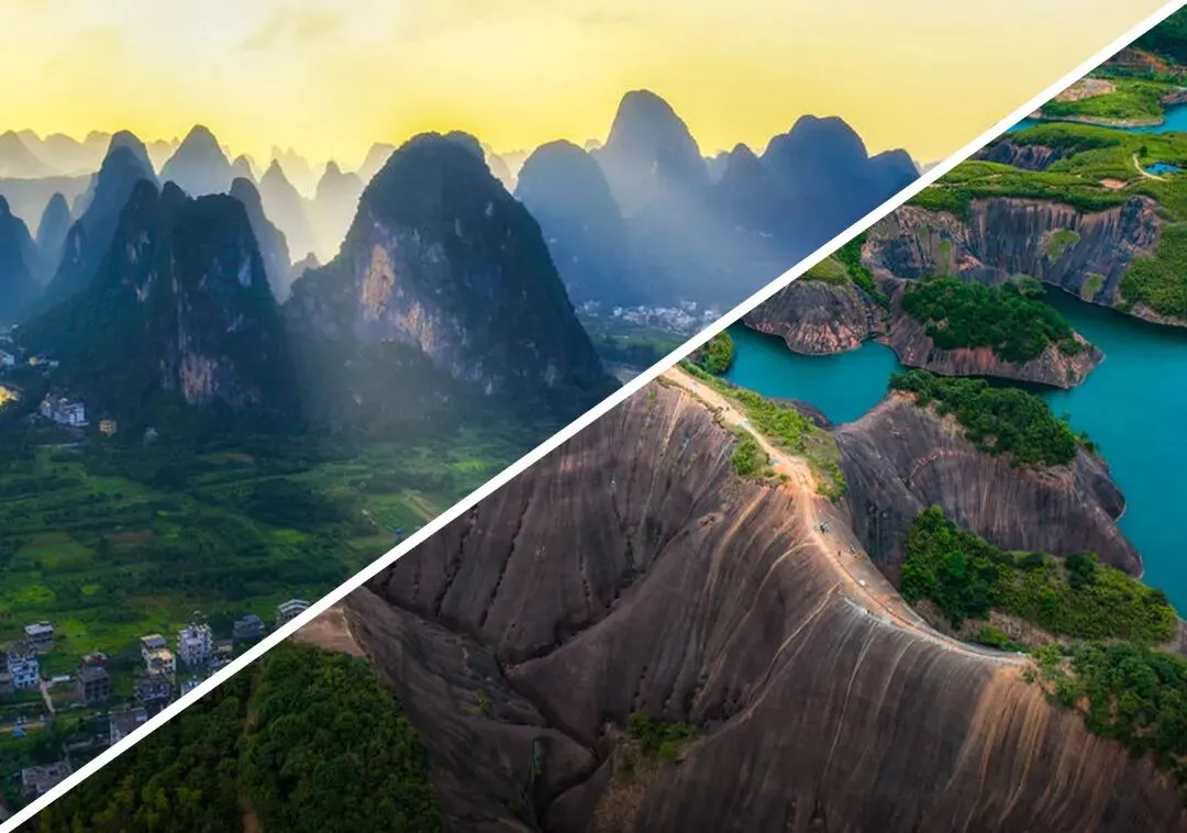 这场邂逅,是喀斯特的“青”与丹霞的“红”的色彩对话。桂林的青灰峰林透着温润雅致,郴州的红岩地貌带着热烈奔放,一西一东,一柔一刚,却同样是大自然的鬼斧神工。