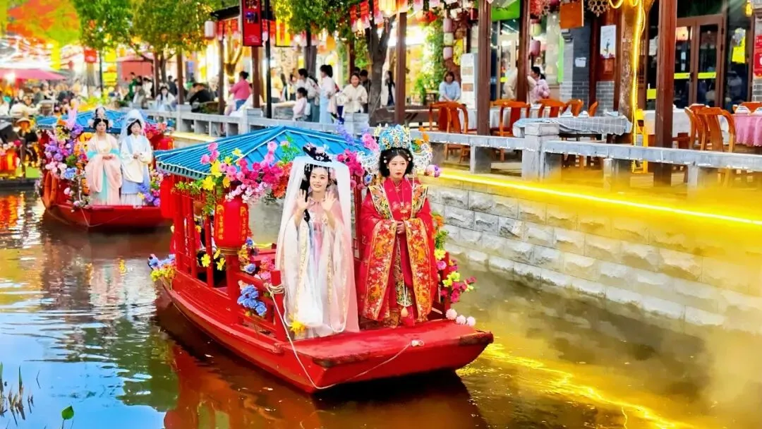 皇家驿站恰如其名,满是古风韵味。车友们可结伴在青石板路上闲逛,看古建错落、时光驿巷藏着怀旧意趣;待华灯亮起,还能赏满街红灯笼映着檐角,看运河上灯影随水波晃动,以及各种精彩纷呈的演绎演出。慢悠悠感受这份夜的惬意与热闹。