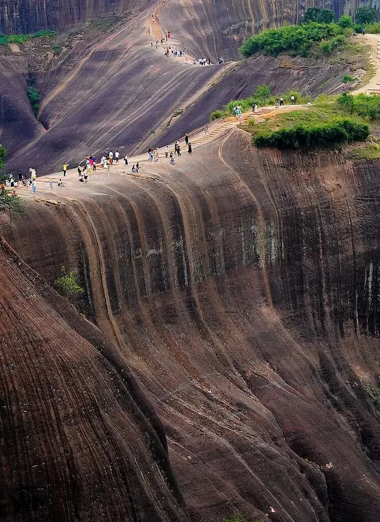 午后转场高椅岭景区,这里的丹霞风光更显壮阔 。沿着步道前行,龙脊背的狭窄山脊两侧尽是悬崖,脚下红岩与远处瓦蓝色的巨蜥湖相映,随手一拍都是视觉大片。胆子大的话,可试试悬空栈道或高空自行车,在惊险中俯瞰山水交融的盛景;或是去喊泉释放活力,看泉水随呐喊声直冲天际 。待到夕阳西下,余晖为赤壁镀上暖光,漫步在连椅桥或巨石阵间,将这份红岩绿水的壮阔,妥妥收进旅途记忆里。