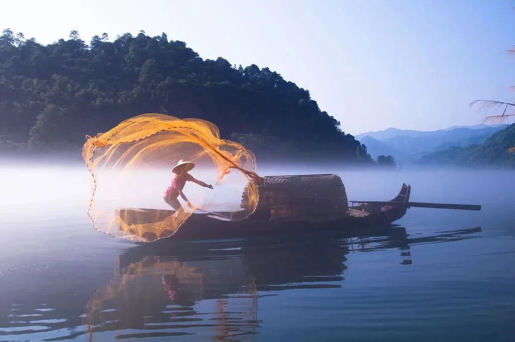 早餐后爱拍照的你就要趁早出发奔赴小东江的“仙境之约”!晨雾最是曼妙,8-10℃的江水与空气形成温差,薄雾如轻纱漫覆江面,两岸峰峦在雾中若隐若现,随手一拍都是水墨长卷 。架好手机,等身着蓑衣的渔夫一声吆喝,金色渔网在空中划出完美弧线,快门声此起彼伏,定格这“中华奇景”的灵动瞬间 。穿件飘逸汉服或浅色系衣物出镜,雾气作背景,妥妥拍出氛围感大片 。