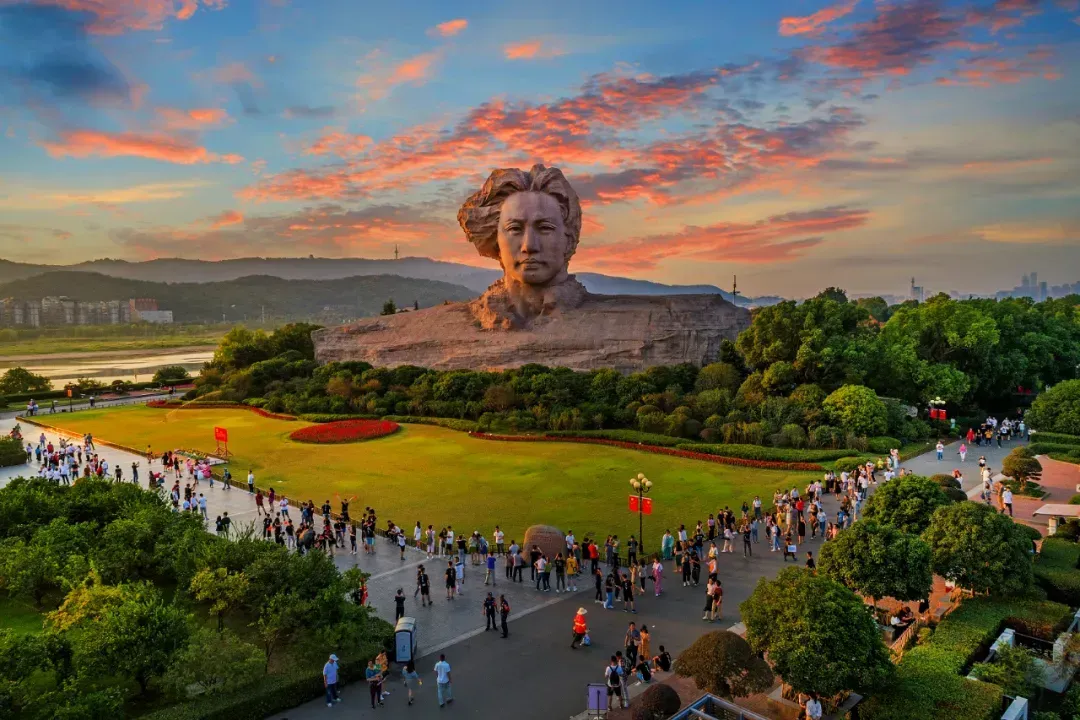 之后跟随领队前往橘子洲头,近距离与毛泽东青年艺术雕塑打卡,也可在朱张渡栈道偶遇湘江白鹭,于望江亭俯瞰江天盛景。