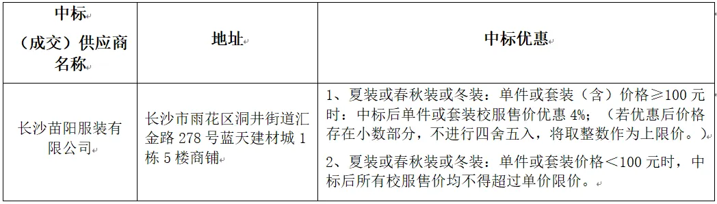 长沙市雨花区自然岭小学、长沙市雨花区锦源小学学生校服推荐服务供应商采购项目中标(成交)结果公告