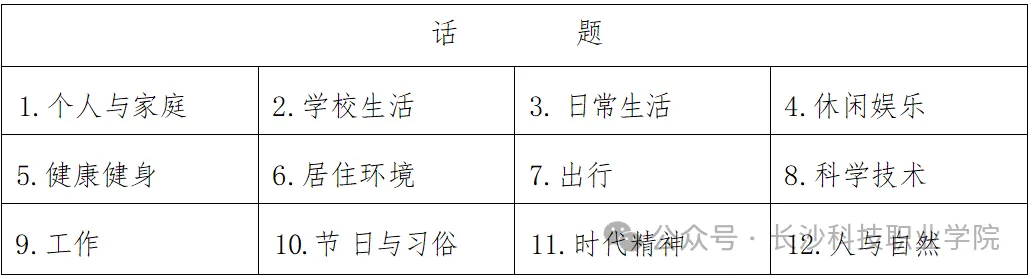 掌握“ 日常交际用语简表 ”(见附录2)中16个功能项目和12个 “话题”(见附录3)的常用表达法。