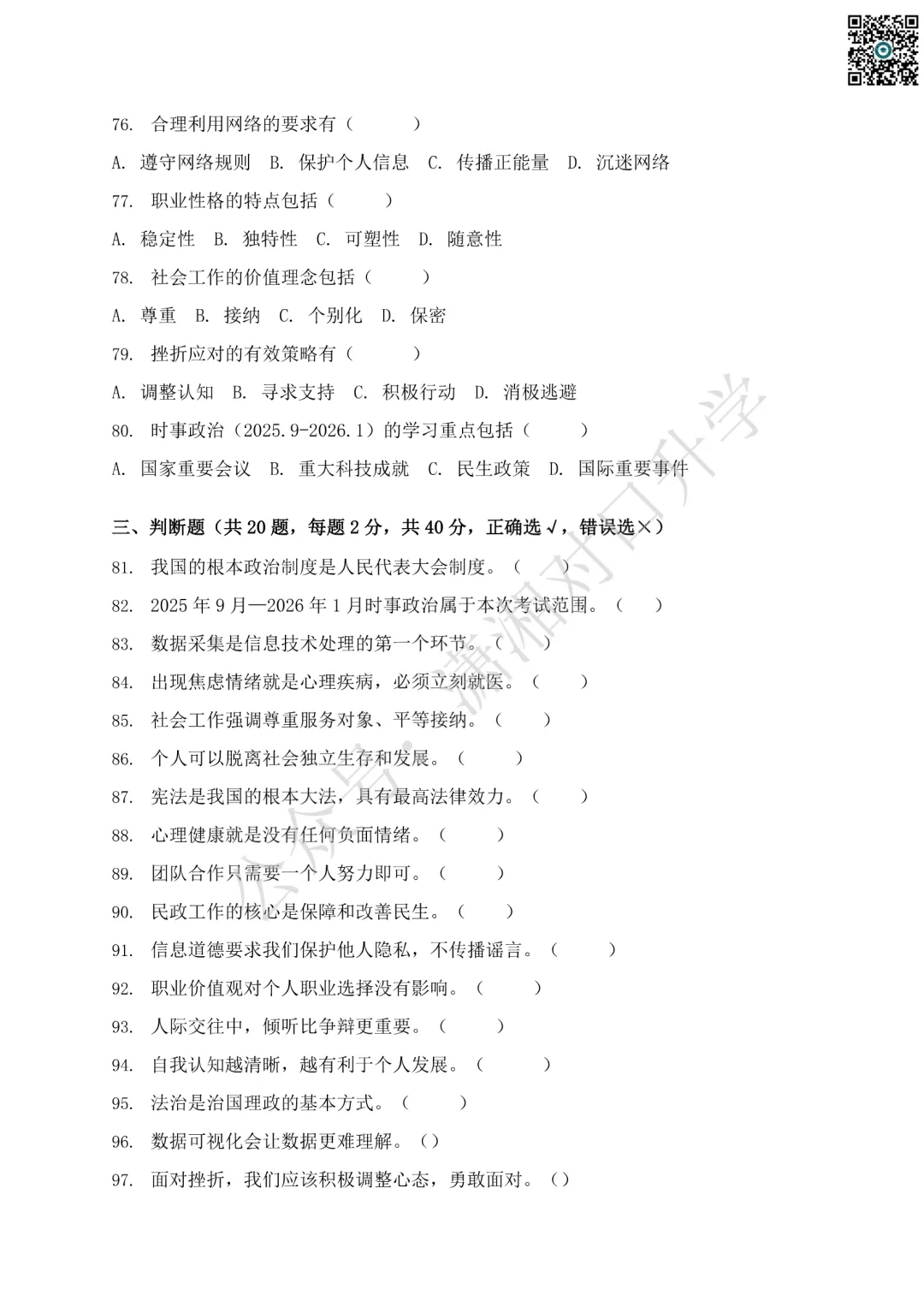 更多考试题库点击下方小程序: