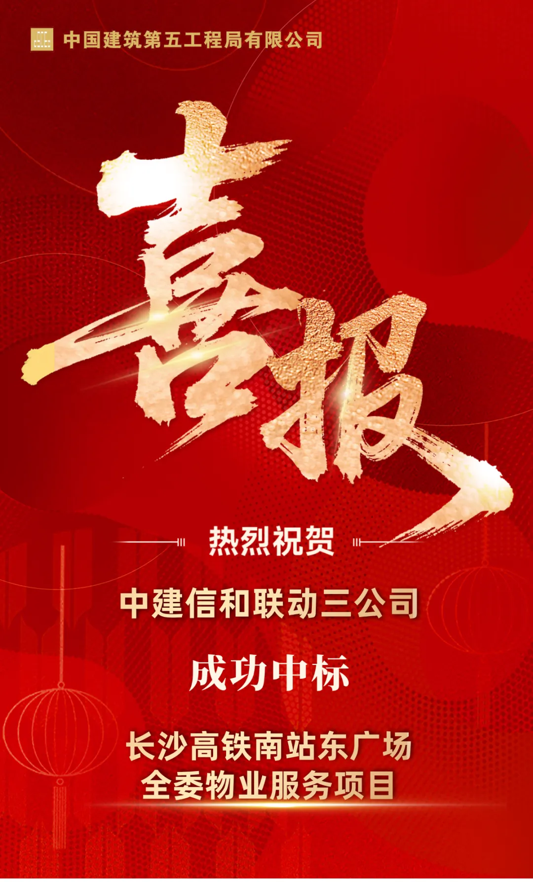 全委新标杆!中建五局中标长沙高铁南站东广场物业服务项目