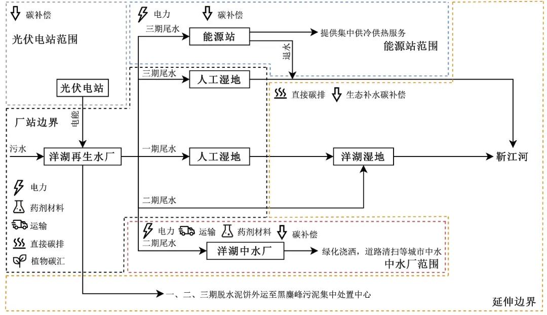 图1 洋湖再生水厂项目整体碳排放位点及核算边界
