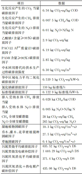 一期、三期厂站人工湿地表面流、水平潜流和垂直潜流湿地总面积约5.95×104 m²,乔木、灌木、花草密植混种区总面积约5.59万m²。经测算,厂站人工湿地植物碳汇量2 150.68 t CO2-eq,厂站厂区绿化植物碳汇量93.77 t CO2-eq。洋湖湿地再生水生态补水量约1.1×105 m³/d,相应洋湖湿地水体换水周期约19天,当建设泵站从湘江引水补水时,由于湘江水质较好,相应换水周期可适当延长,按再生水补水换水周期的4倍测算,预计年补水量1.004×107 m³/a,经测算引水泵站运行能耗约0.405 kW·h/m³,相应再生水补水碳补偿量2 193.71 t CO2-eq。