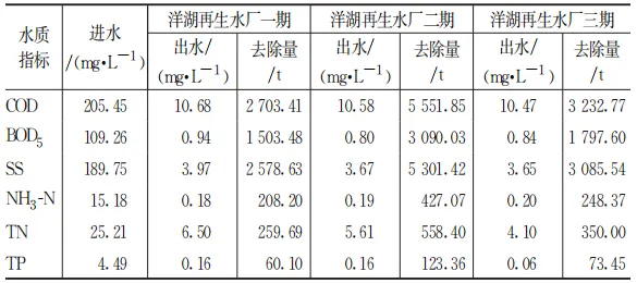 表4 2024年洋湖再生水厂日均进出水水质及污染物去除量