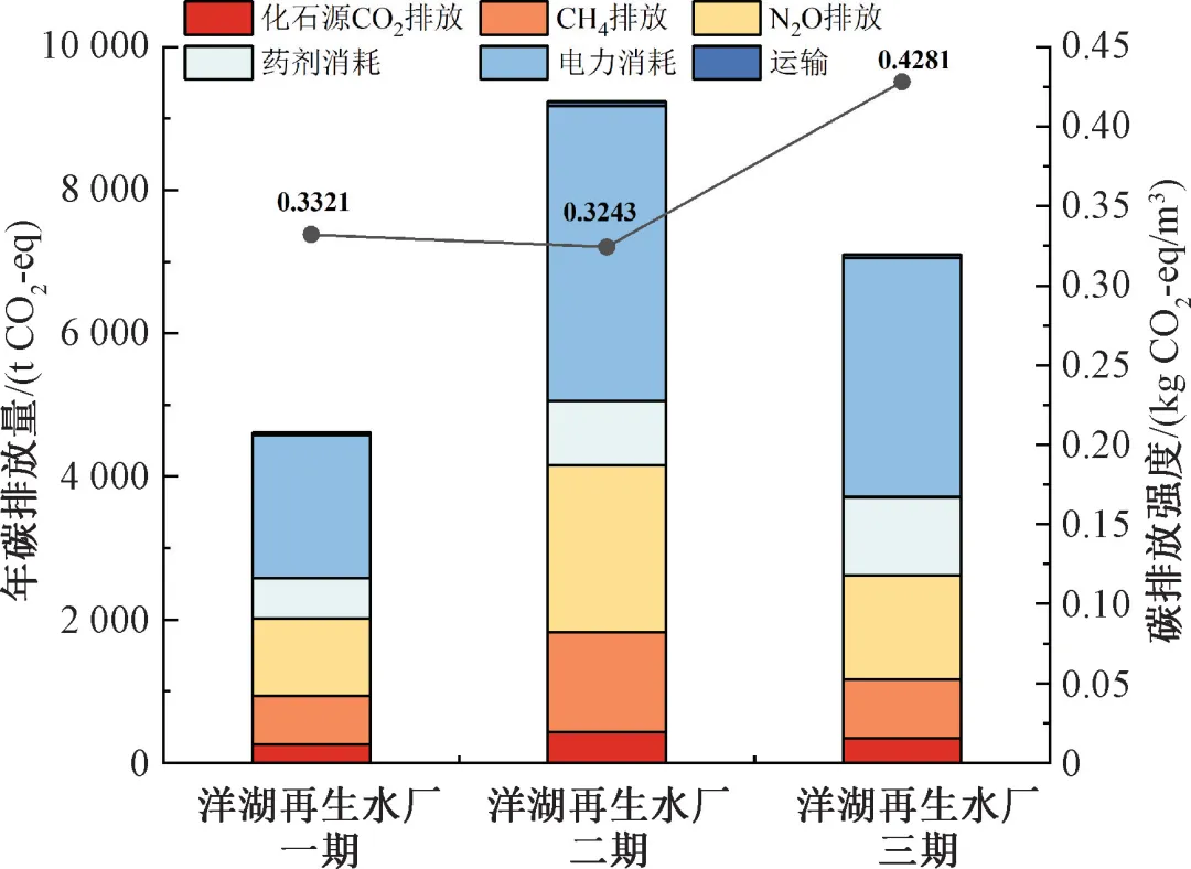 图2 2024年洋湖再生水厂一、二、三期厂站碳排放数据