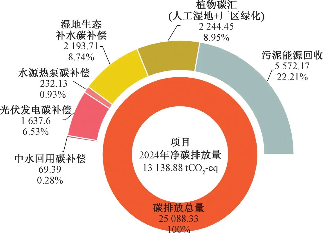 图3 2024年洋湖再生水厂碳减排占比分析
