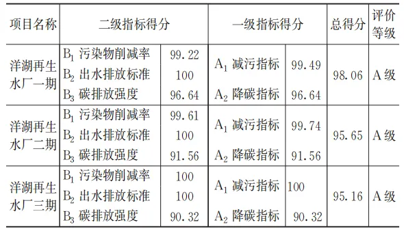 表6 洋湖再生水厂一、二、三期厂站减污降碳指标得分