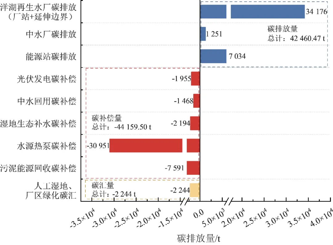 图5 满负荷工况下洋湖再生水厂项目整体碳减排潜力