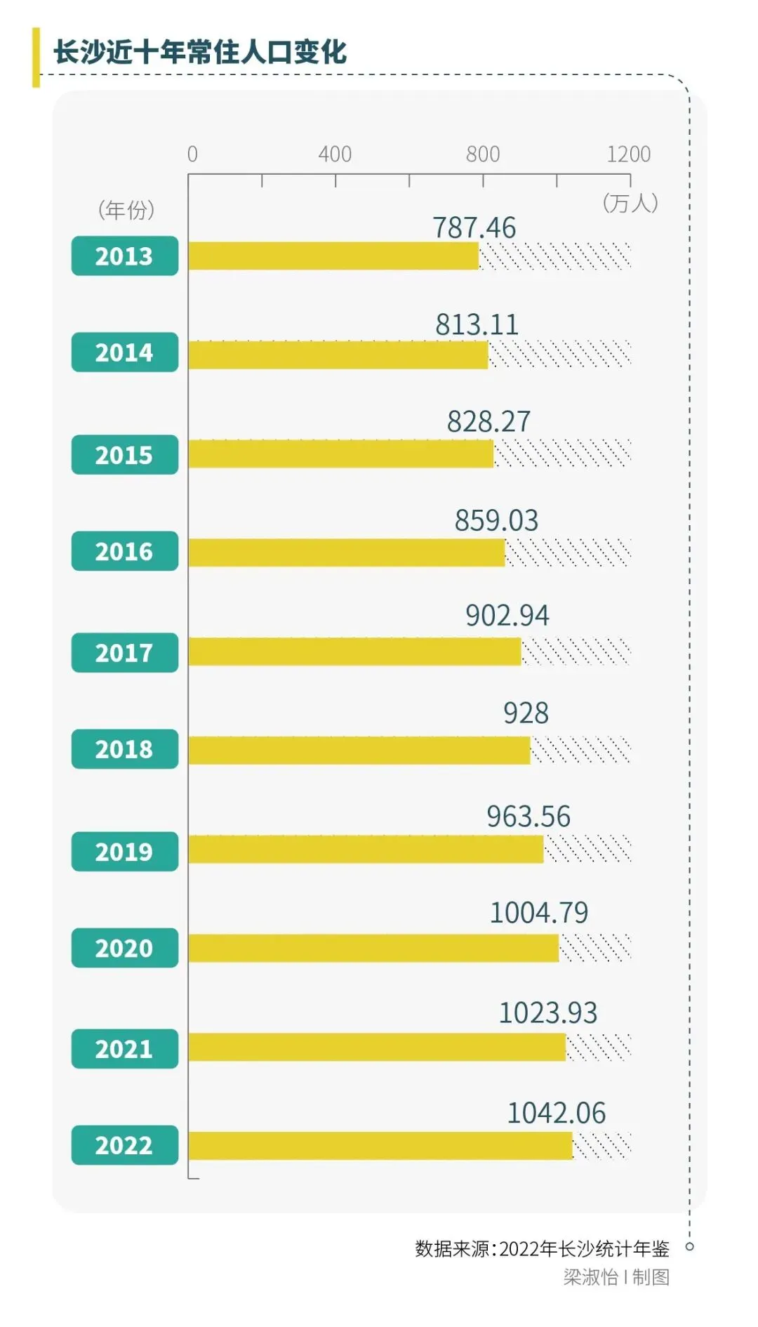 十年间,长沙常住人口增长率32.3%,其人口增长绝对值与增幅均位居中国重点城市前列。