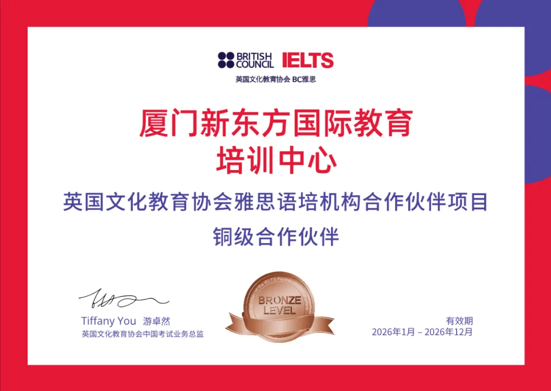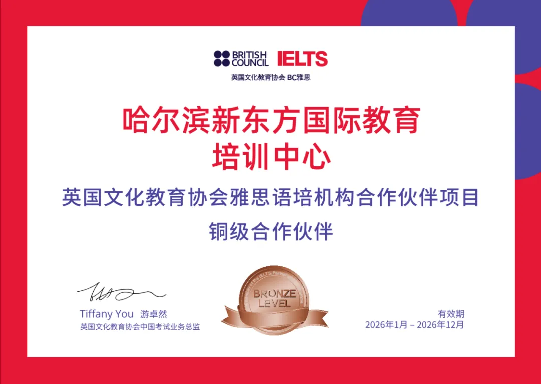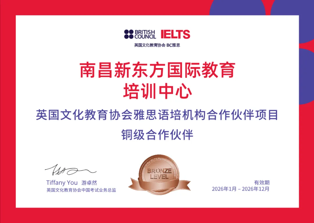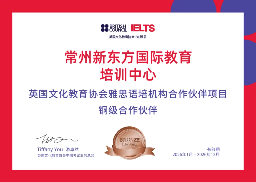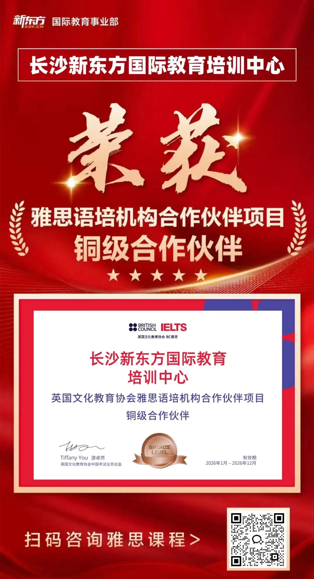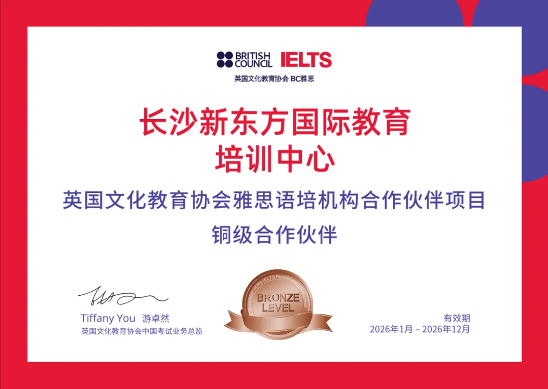 长沙新东方国际教育培训中心荣获“铜级合作伙伴”。是长沙地区唯一获得官方评级的机构。