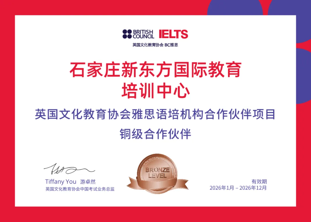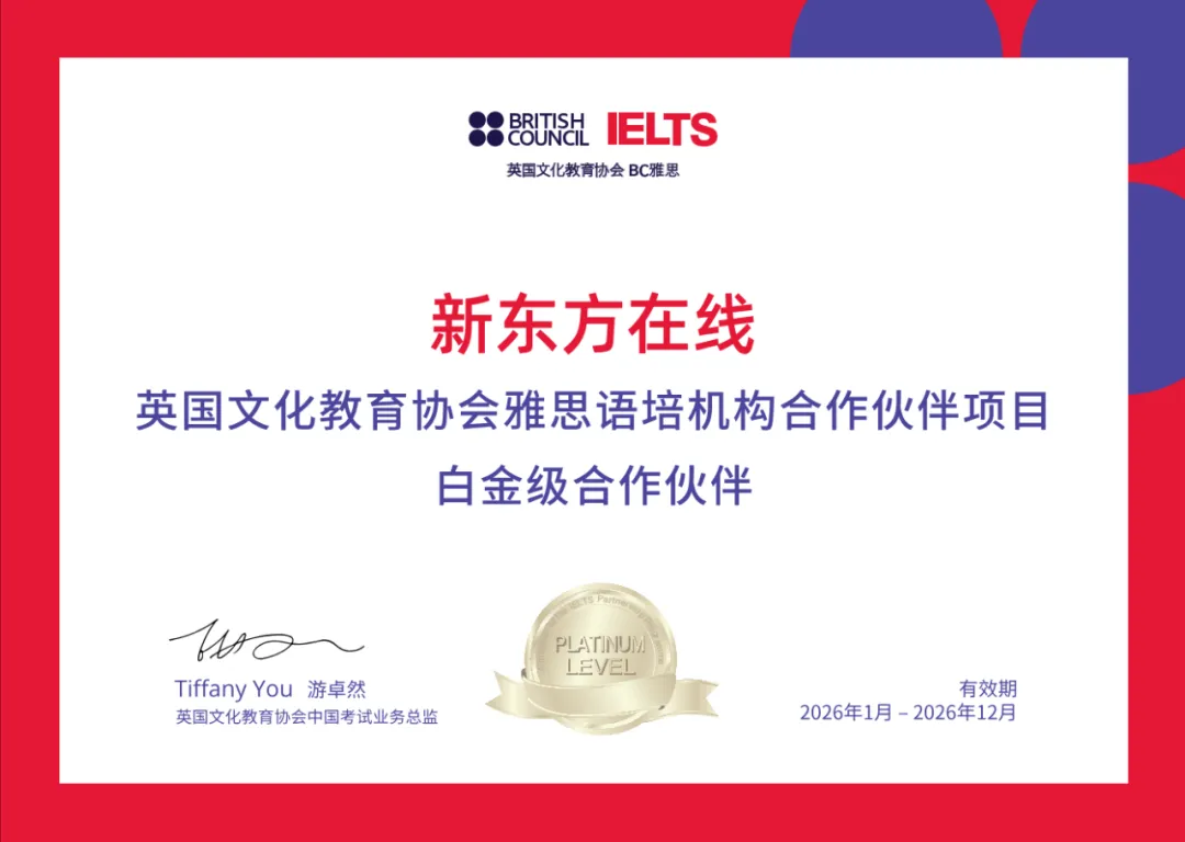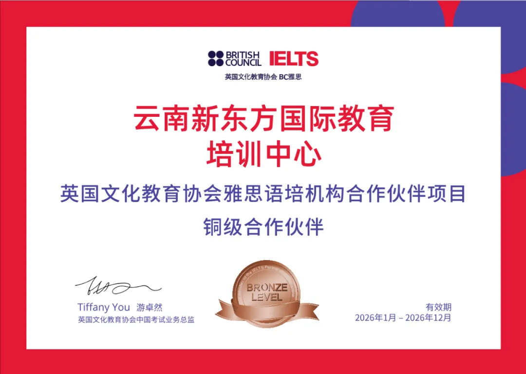 新东方国际教育将继续携手英国文化教育协会,深耕雅思语培,不止于考试,更致力于构建一个健康、活跃、可持续的雅思生态圈。让雅思不止是一场评估,更成为一代代中国学子走向世界的起点——我们铺路,他们启程。