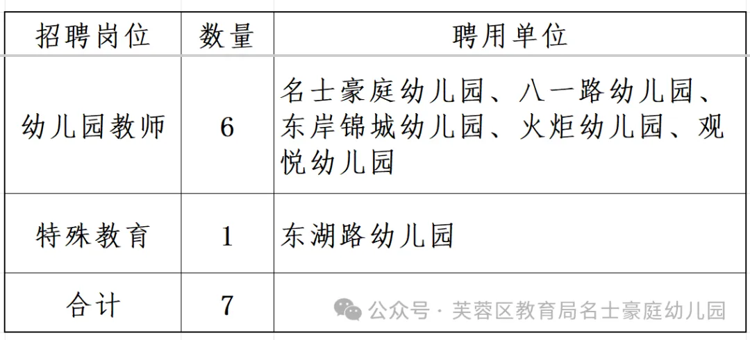 为进一步加强师资队伍建设,优化队伍结构,促进学前教育高质量发展,芙蓉区教育局属幼儿园面向社会公开招聘编外合同制教师。现将有关事宜公告如下: