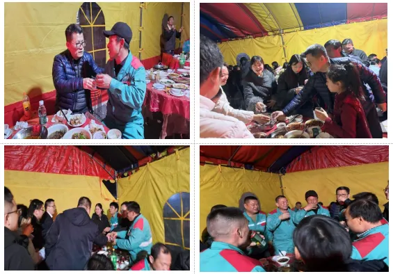 聚餐环节,员工们围坐共享团圆饭,窗外寒意未消,屋内暖意融融。活动尾声,伴手礼分发至每位员工手中,承载着公司对员工的关怀与新年祝福。