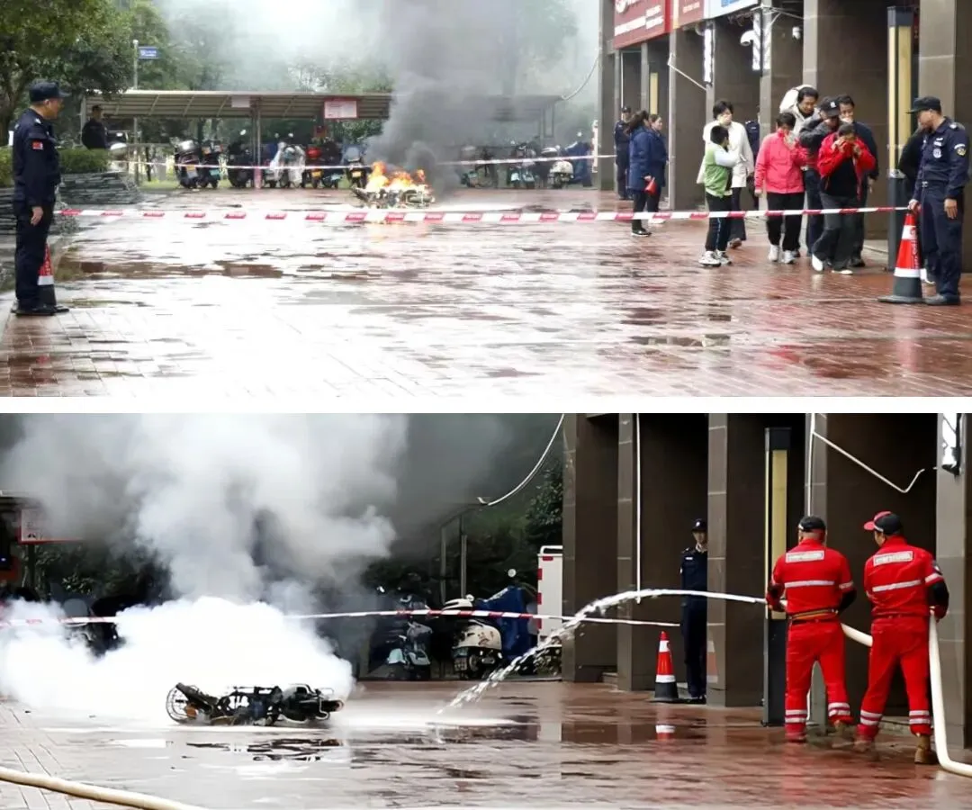 随着电动自行车保有量的激增,其火灾风险已成为社区安全的重大隐患。演练的第二战场,模拟了充电区域电动车突发起火的情景。“报告指挥中心!发现电动车冒烟起火,请求支援!”巡逻岗发现“火情”后立即上报。