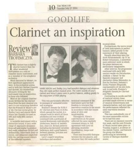 曾与开普敦交响乐团、皇家爱乐乐团和BBC苏格兰交响乐团等世界知名乐团合作演出,并在南非、欧洲和加拿大举办了多场独奏和室内乐音乐会,还受邀参加希腊的德米特里亚音乐节(Demetria Festival)和萨尼国际音乐节(Sani International Festival)演出。她曾与Leto Ensemble合作,在BBC广播3台(BBC Radio 3)播出。最近她发行了一张专辑,收录了汉斯·加尔(Hans Gal)为单簧管和弦乐创作的所有作品,该专辑在《留声机》杂志(Gramophone)上获得了高度评价。