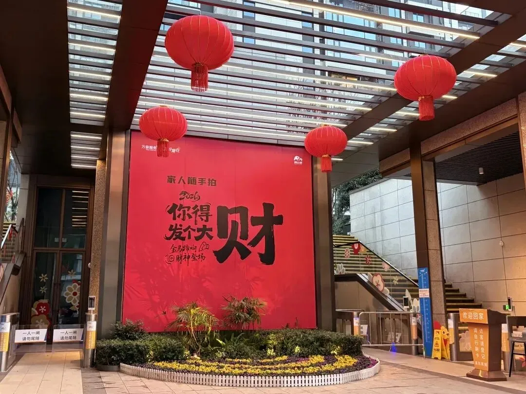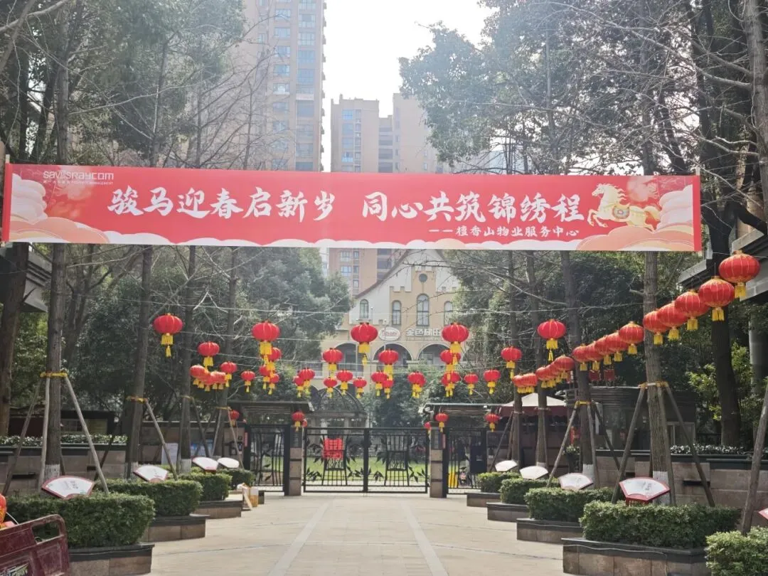 长沙悦府、润府、瑞府、润越府、琨瑜府、凯旋门、橡树湾等多个项目开展“园区焕新”行动,精心营造园区新春氛围。从小区主入口到单元门厅,红灯笼高高悬挂,中国结随风轻扬,窗花点缀玻璃,一面面创意字墙更是成为业主拍照打卡的热点。