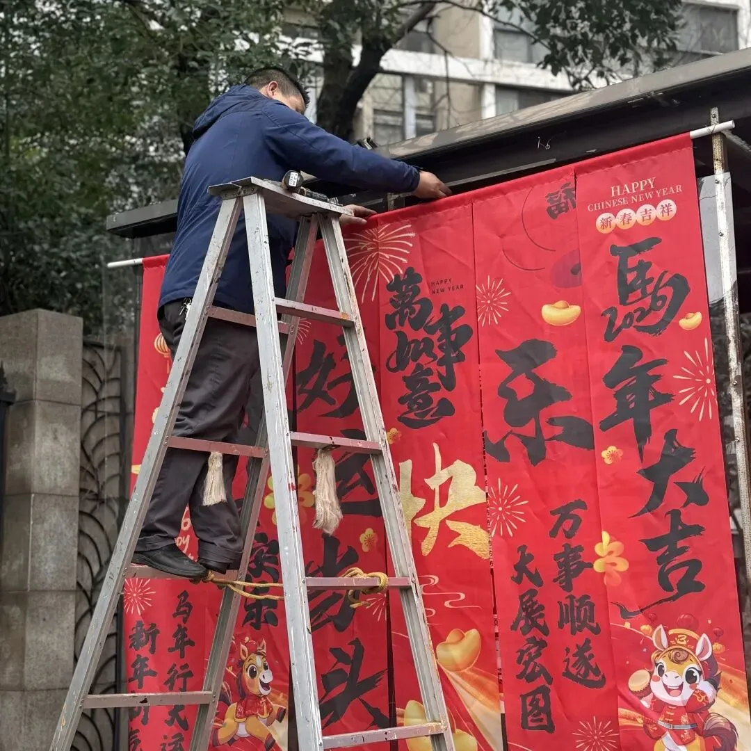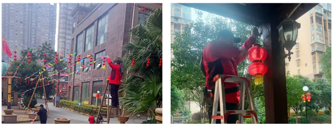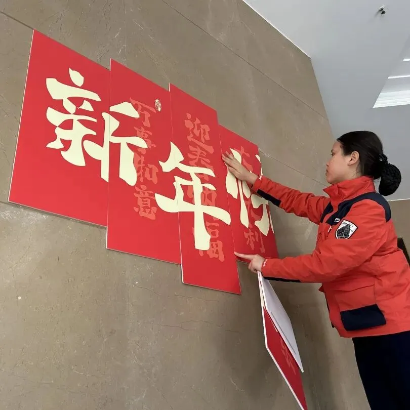 物业工作人员与业主志愿者一同参与,彻底清扫公共区域,携手装点楼道、大堂等共享空间,以整洁明亮的园容、喜庆祥和的布置,迎接新一年的到来。