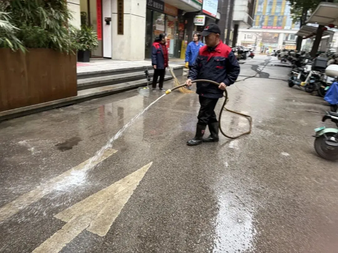 保洁人员手持扫帚、抹布与高压水枪,从楼宇大堂到地下车库,从儿童娱乐区到健身区域,从公共连廊到休闲步道,细致清扫每一处积尘,精心擦拭每一个角落。他们扫去尘埃、清洁立面、冲洗地砖,全面提升环境品质,让园区处处整洁如新、焕发光彩。