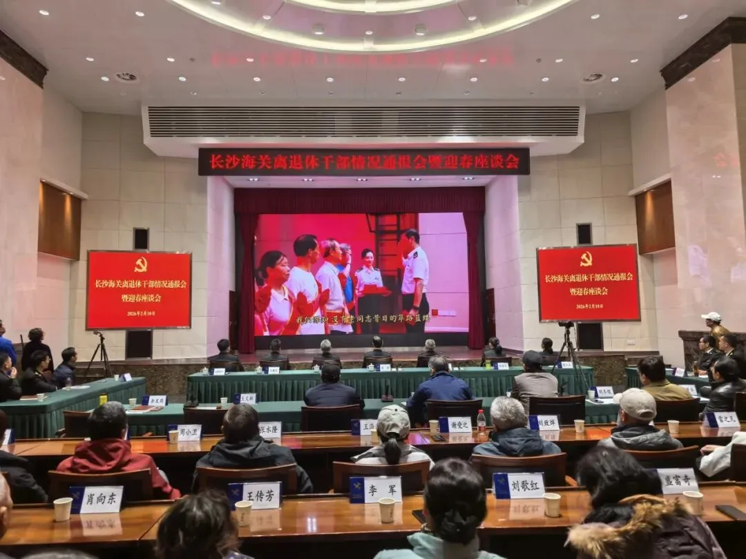 近日,长沙海关召开2026年离退休干部情况通报会暨迎新春座谈会。党委书记、关长顾炯,党委委员、政治部主任周首义出席会议,离退休干部代表、离退休干部工作领导小组成员单位主要负责人50余人参加。