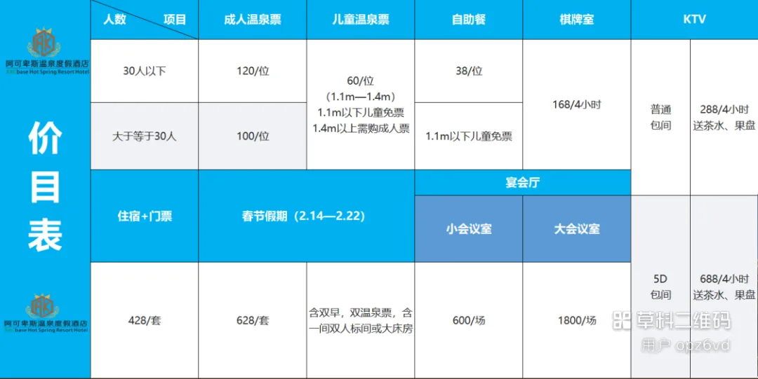 温泉玩乐票:成人119元/人,1.1-1.4米儿童:60元/人,1.1米以下儿童免票;