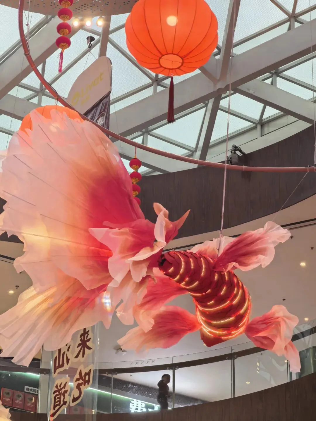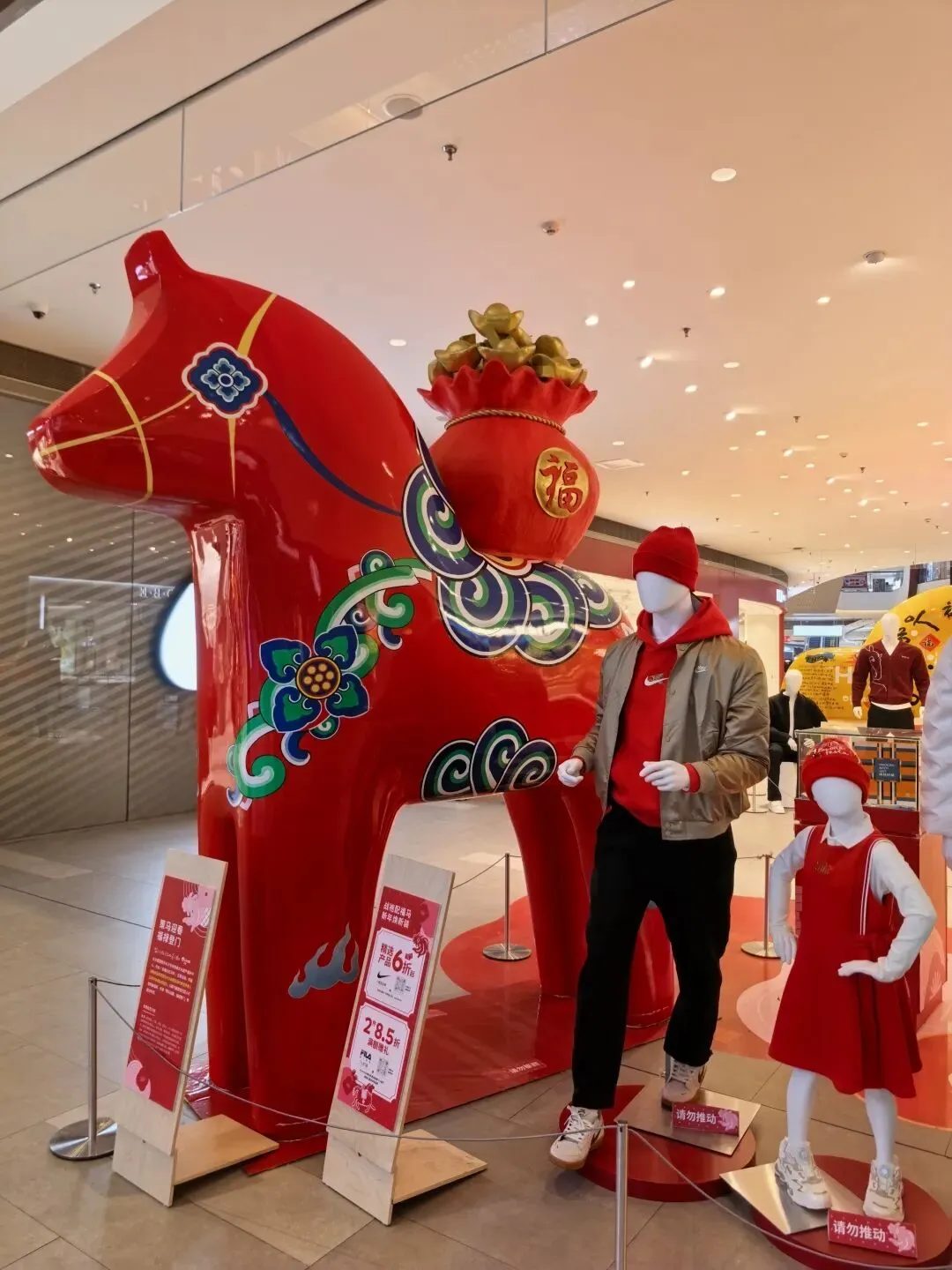 临近春节,年味儿日渐浓郁。宜家荟聚里的中庭布置起来了。红彤彤的马儿、红彤彤的福字、红彤彤的灯笼、红彤彤的鱼儿,一派喜气洋洋的新年气氛。