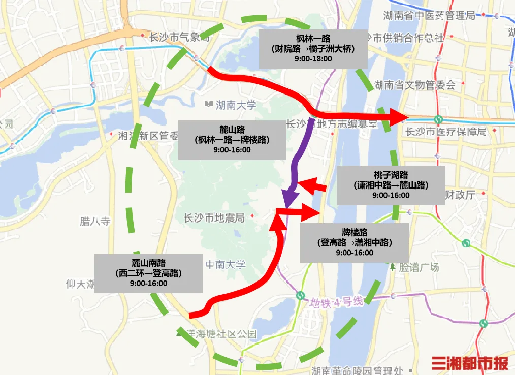 2月17日至2月23日,随着外地游客数量逐步增加,橘子洲—岳麓山景区周边道路拥堵将明显上升。预计每日9时至18时,景区周边的橘子洲大桥、麓山南路、桃子湖路、牌楼路将出现不同程度交通拥堵。