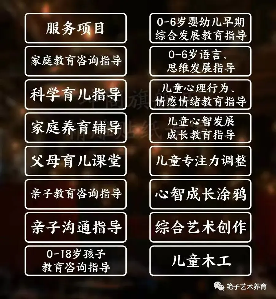 亲爱的爸爸妈妈们,感谢您对艳子老师的信任及选择艳子来做您的育儿指导师和孩子全面心智发展成长的教育指导师。孩子的心智发展成长是需要老师和家庭共同配合,需要我们的父母积极学习成长自己,学习科学的养育方式,在家庭里也一样能给孩子提供能支持孩子积极发展成长的优质教育引导。