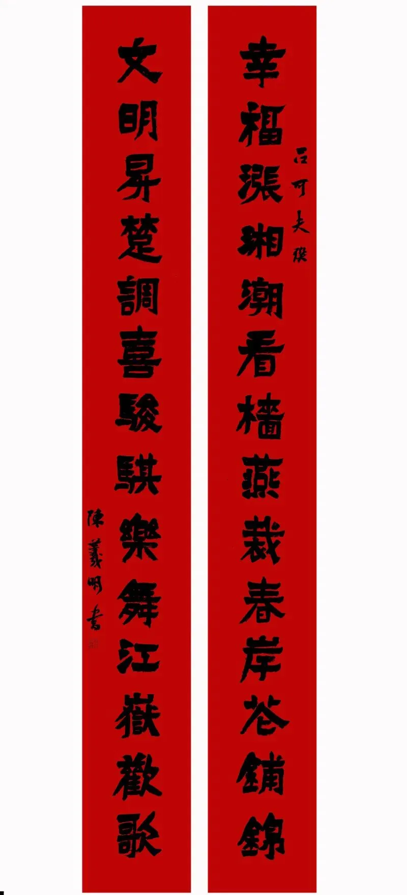 解读:对联以明快昂扬的笔调将历史文脉与时代背景融为一体,在“樯燕裁春”与“骏骐乐舞”的生动画面中,展现了杜甫江阁作为文化地标与时代符号的双重魅力。全联通过“幸福涨湘潮”的民生温度与“文明升楚调”的文化高度,彰显了湖湘文化的深厚底蕴和新时代长沙的精神气象。