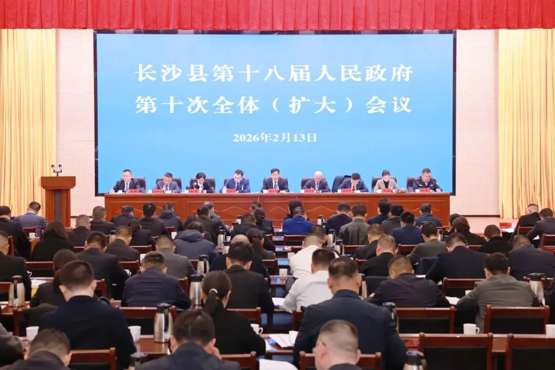 2月13日,长沙县第十八届人民政府召开第十次全体(扩大)会议,总结梳理2025年政府系统工作,谋划铺排2026年工作,审议《政府工作报告(送审稿)》,动员全县政府系统统一思想、凝心聚力,锐意进取、开拓创新,为全面建设“三个高地”、基本建成中国式现代化先行区而团结奋斗。长沙县委副书记、县长陈永高出席并讲话。