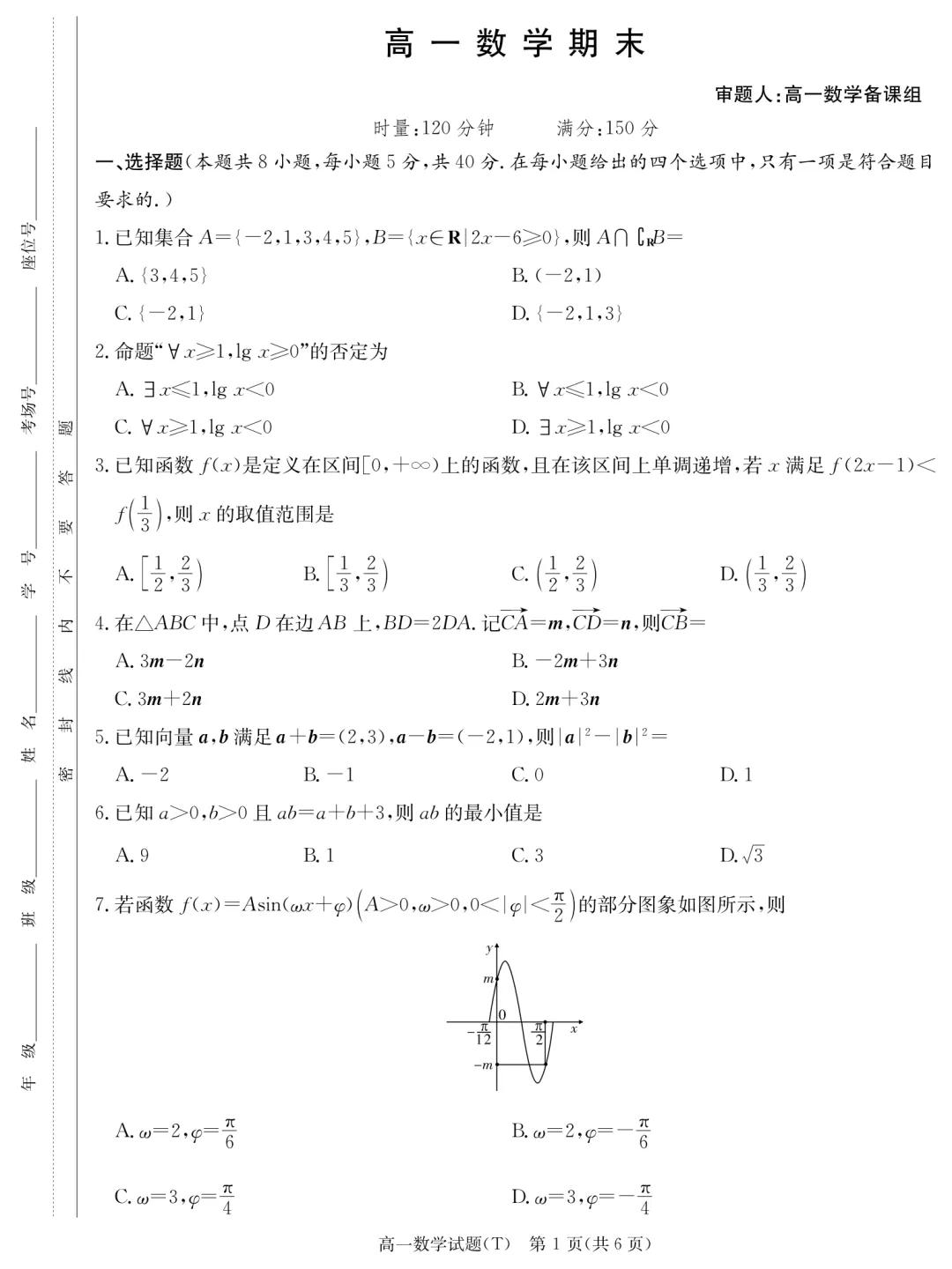 >湖南省长沙市岳麓区湖南师范大学附属中学2025-2026学年高一上学期1月期末试题