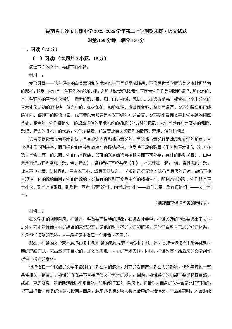 湖南省长沙市长郡中学2025-2026学年高二上学期1月期末