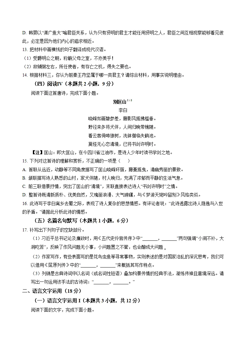 【精品汇编】备战2025-2026学年高一语文上学期期末真题分类汇编(统编版)