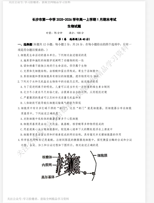 【湖南卷】【长沙市第一中学】【期末】湖南省长沙市第一中学2025-2026学年高一上学期期末(01.28 开考)