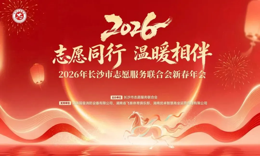 近日,由长沙市志愿服务联合会主办,湖南国曼消防设备有限公司、湖南省飞客体育俱乐部、湖南优卓智慧商业运营管理有限公司等单位协办支持的 “志愿同行,温暖相伴”2026长沙市志愿服务联合会新春年会隆重举行。市委社会工作部、开福区委社会工作部、秀峰街道相关领导,各区县(市)志愿服务联合会负责人及各界志愿者代表齐聚一堂,共商长沙志愿服务事业高质量发展大计。